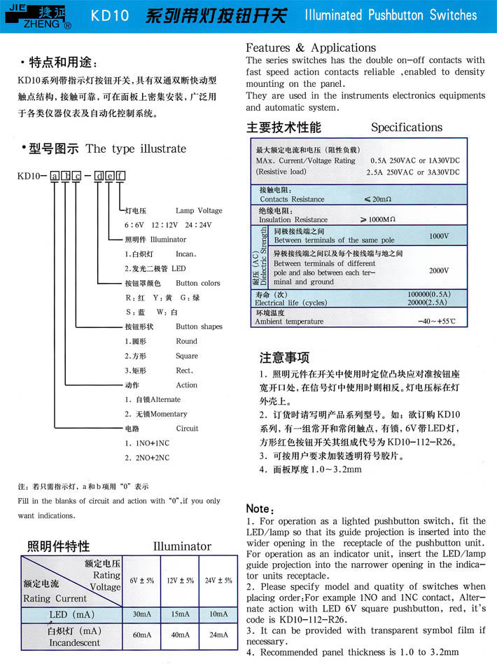 產(chǎn)品型號(hào):KD10系列帶燈按鈕開關(guān)