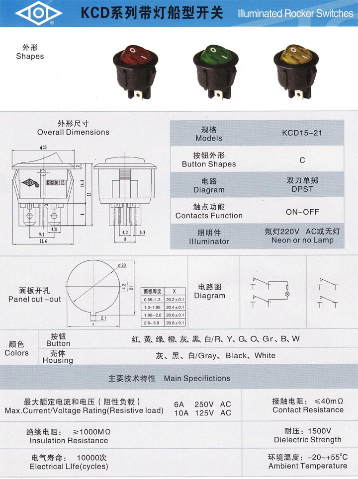 產(chǎn)品型號(hào):KCD15帶燈船型開(kāi)關(guān)